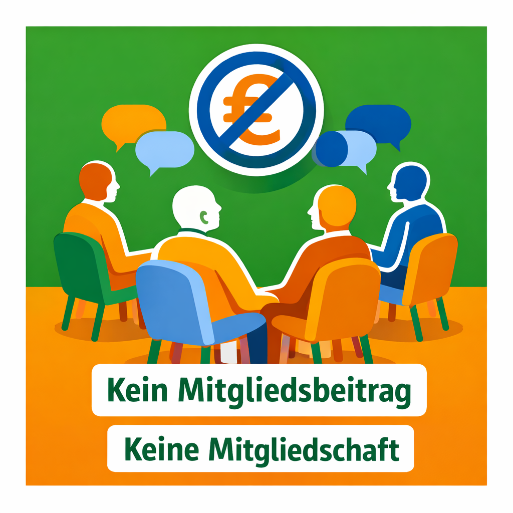Die Teilnahme ist freiwillig und unentgeltlich; es entstehen weder Mitgliedschaften noch Mitgliedsbeiträge oder sonstige Verpflichtungen.
